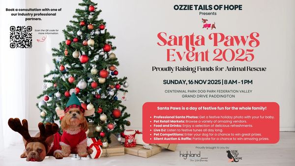 Every ticket to Santa Paws helps provide rescue, rehabilitation, and rehoming support for animals in need. Celebrate with us on 16 November at Centennial Park — and be part of something truly meaningful.